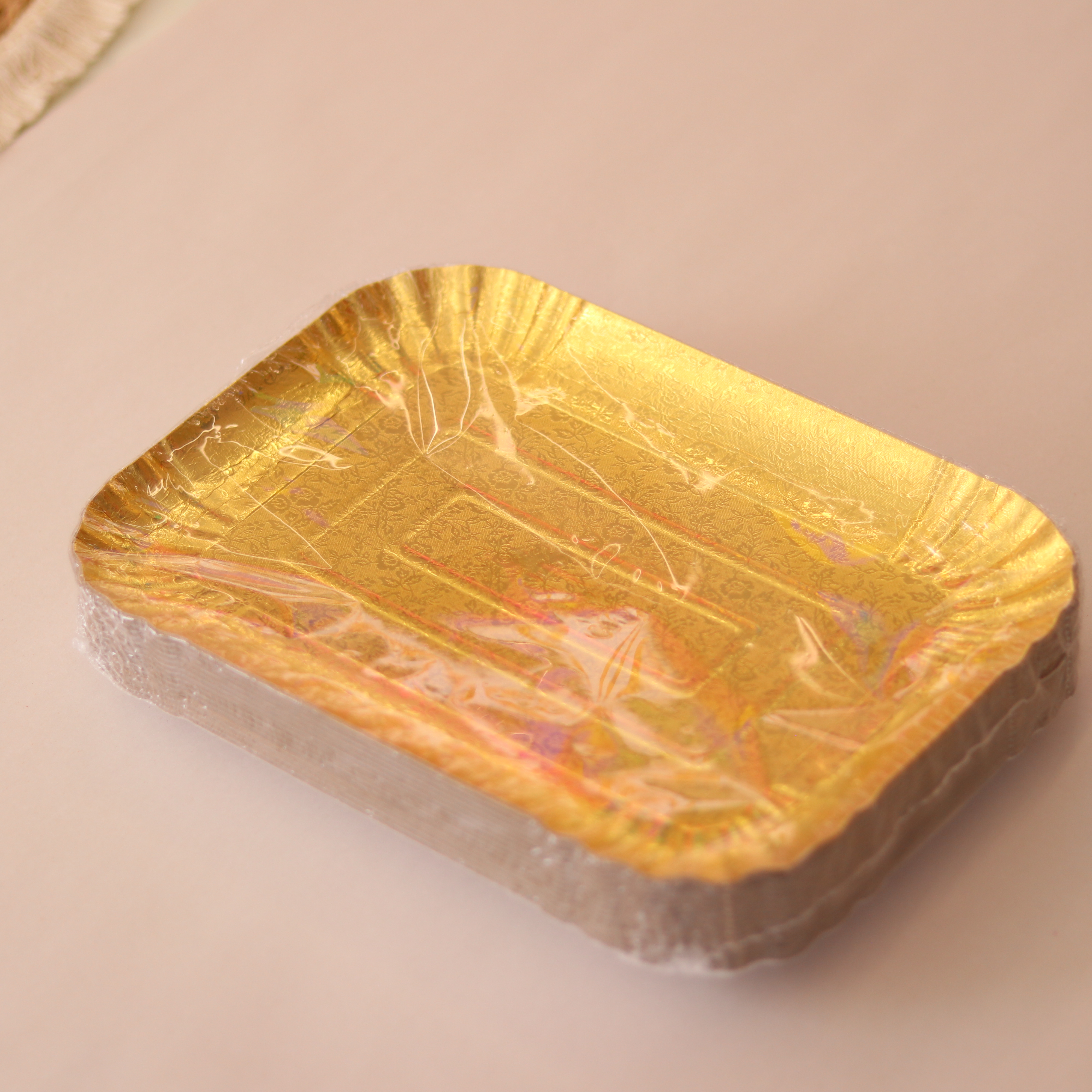 صحون كرتون مستطيل ذهبي 1.5ملم
